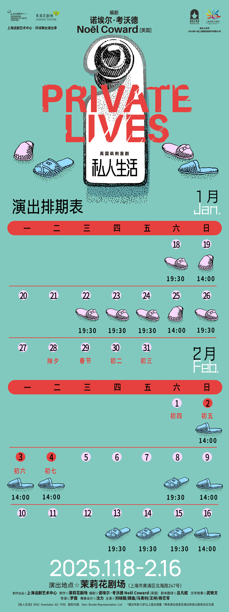 1月18日,英国讽刺喜剧《私人生活》在茉莉花剧场首演,这是该剧中文版首度被搬上中国话剧舞台。作为茉莉花剧场首部自制剧、2025春节贺岁大戏,《私人生活》将上演至2月16日。